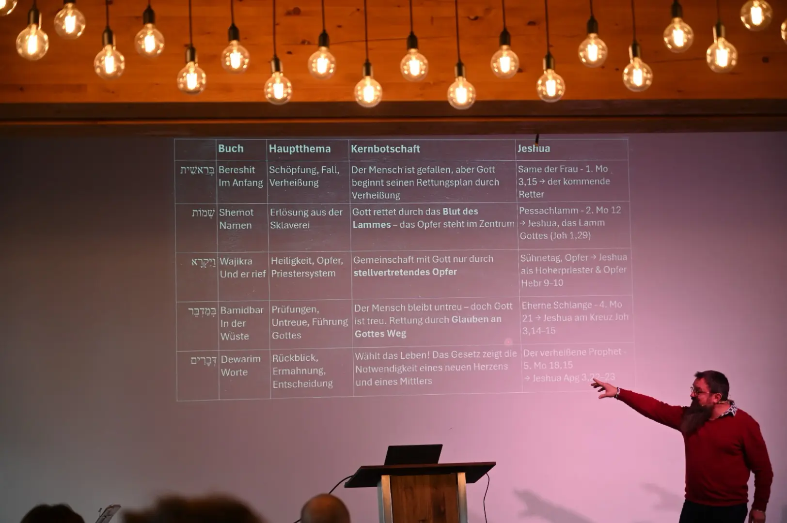 Am Samstagvormittag, -abend und Sonntagvormittag hatten wir Vorträge von Alex Neufeld über das spannende Thema „Der Messias in den Festen Israels“. Alex beleuchtet die Feste Israel und zeigte auf, wie und worin diese auf unseren Erlöser Jesus hindeuten.