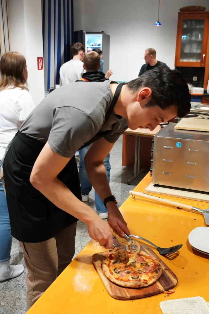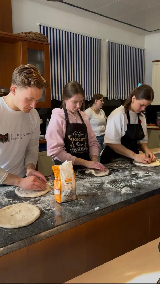 Am 10.04. durften wir als Jugend eine Pizza Aktion in der Gemeinde durchführen. Diese Aktion hatte den Zweck, Spenden für ein Missionseinsatz der Jugend einzunehmen, welcher in den nächsten Jahren in Planung steht. Die Pizzen wurden schon im Voraus bestellt und konnten zu einer zuvor angegebenen Uhrzeit vor Ort, bei einer italienischen Atmosphäre gegessen oder auch abgeholt werden. Das Pizza backen wurde in fünf Stationen eingeteilt, welche sich aus Gemüse schneiden und Geschirr waschen, Teig bearbeiten, Teig belegen, backen und der Bedienung sowie Empfang, zusammensetzen. Diese Aktion hat uns als Jugend auch sehr Spaß gemacht und wir sind gespannt, welche Aktion wir in Zukunft noch machen können. Insgesamt durften wir 58 Pizzen backen und ca. 1000 Euro als Spende erhalten, was uns unserem Ziel deutlich näher gebracht hat und wofür wir euch als Gemeinde sehr dankbar sind.